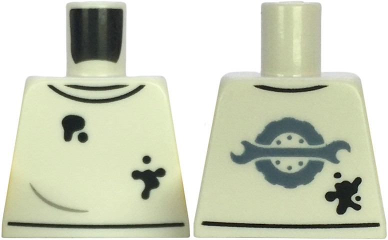 Torso Shirt with Black Oil Stains, Sand Blue Spanner Wrench and Wheel with Tire Logo on Back Pattern