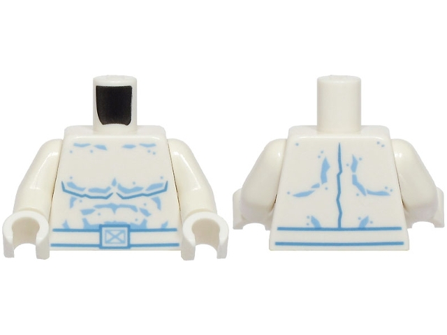 Torso Super Hero Costume with Bright Light Blue and Medium Blue Muscles Outline, Spots and Belt with X-Men Logo Buckle Pattern / White Arms / White Hands