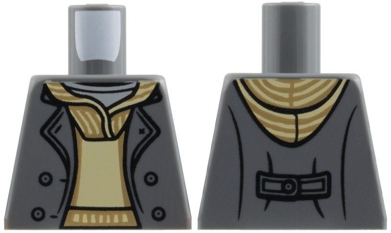 Torso Jacket Open with Buttons over Tan Hoodie with Dark Tan Stripes and Light Bluish Gray Shirt Pattern