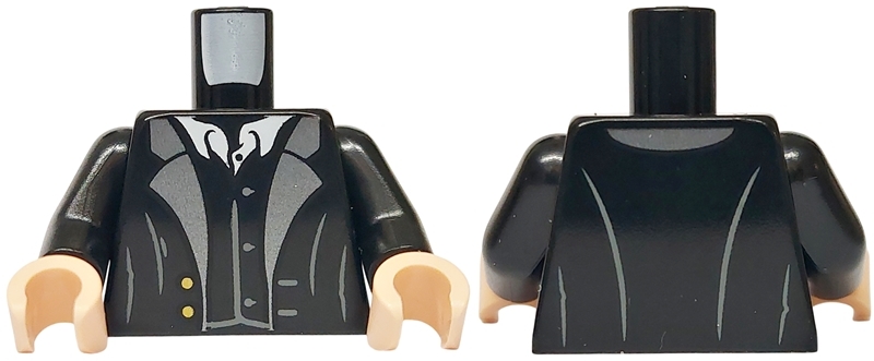 Torso Jacket Open with Dark Silver Lapels and Gold Buttons over Vest and White Shirt Pattern / Black Arms / Light Nougat Hands