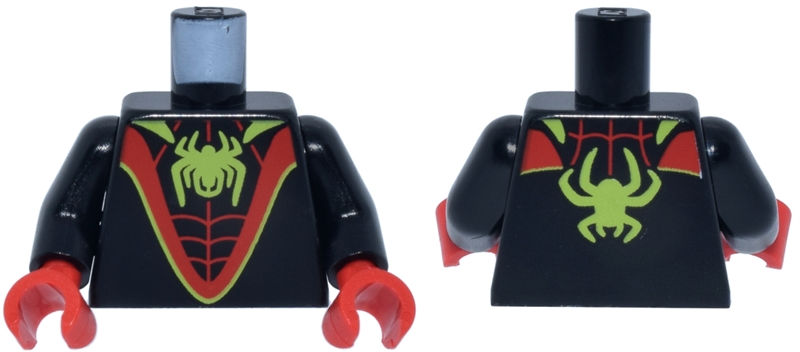 Torso Super Hero Costume with Red V-Shaped Stripe and Webbing, Lime Spider and Trim Pattern / Black Arms / Red Hands