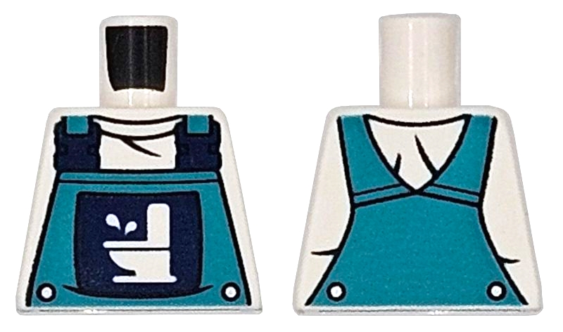 Torso Dark Turquoise Overalls with Toilet Logo, Dark Blue Buckles and Silver Buttons over Shirt Pattern