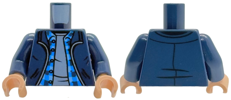 Torso Jacket Open with Pockets over Blue Plaid Shirt with Buttons and Collar and Sand Blue Undershirt Pattern / Dark Blue Arms / Light Nougat Hands