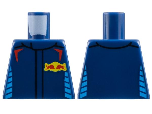 Torso Racing Suit with Chevrons on Shoulders, Dark Azure Broken Stripes on Sides, Red and Yellow Red Bull Logo Pattern