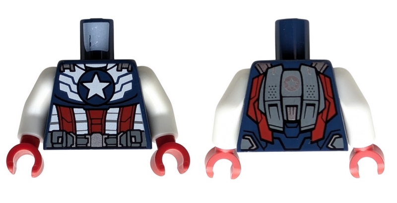Torso Armor with White Star, Stripes and Abdomen with Red Panels, Dark Bluish Gray Belt with Pouches and Silver Buckle, Jet Pack on Back Pattern / White Arms / Red Hands