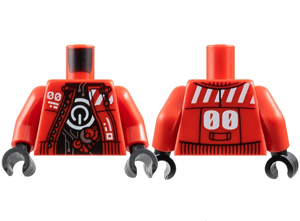 Torso Jacket Open with White '00' and Danger Stripes over Power Button Logo and Silver Circuitry on Black Background Pattern / Red Arms / Black Hands