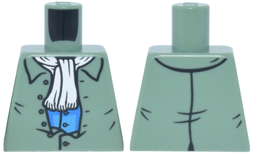 Torso Shirt Partially Open with Buttons over Blue and Dark Azure Vest, White Scarf with Fringe Pattern