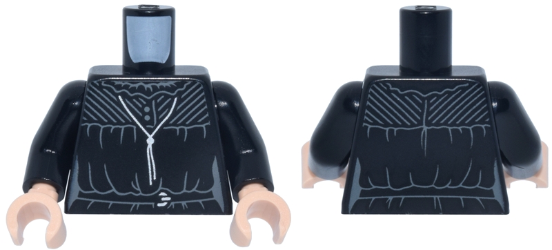 Torso Female Loose Dress with Dark Bluish Gray Stitching and Folds, Belt with Silver Buckle, Bolo Necklace Pattern / Black Arms / Light Nougat Hands