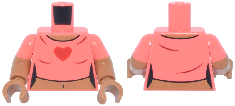 Torso Female Crop Top T-Shirt with Red Heart, Medium Nougat Neck and Stomach with Navel Pattern / Medium Nougat Arms with Molded Coral Short Sleeves Pattern / Medium Nougat Hands