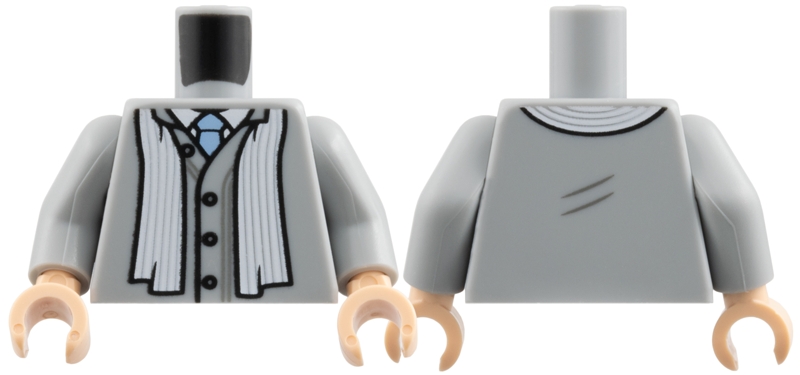 Torso Cardigan Sweater with Black Buttons, Striped Scarf, White Shirt, Bright Light Blue Tie Pattern / Light Bluish Gray Arms / Light Nougat Hands