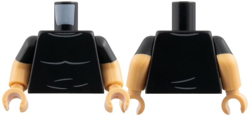 Torso Shirt with Dark Bluish Gray Collar, Muscle Contours and Creases Pattern / Medium Tan Arms with Molded Black Short Sleeves Pattern / Medium Tan Hands