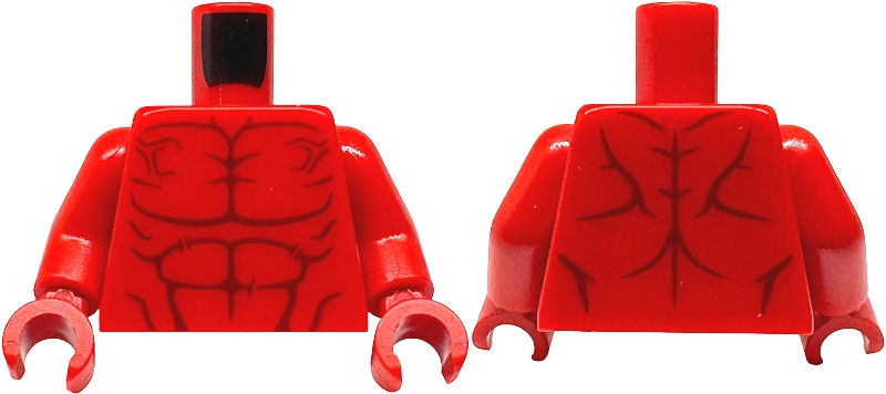 Torso Bare Chest with Dark Red Muscles Outline, Veins and Wrinkles Pattern / Red Arms / Red Hands