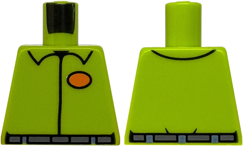 Torso Shirt with Collar, Orange Oval, Dark Bluish Gray Belt, Sand Blue Belt Loops Pattern