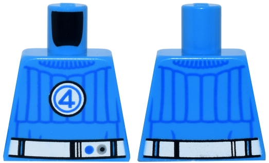 Torso Super Hero Costume with Blue Trim and Collar, White Belt and Fantastic Four Emblem with Number 4 Pattern