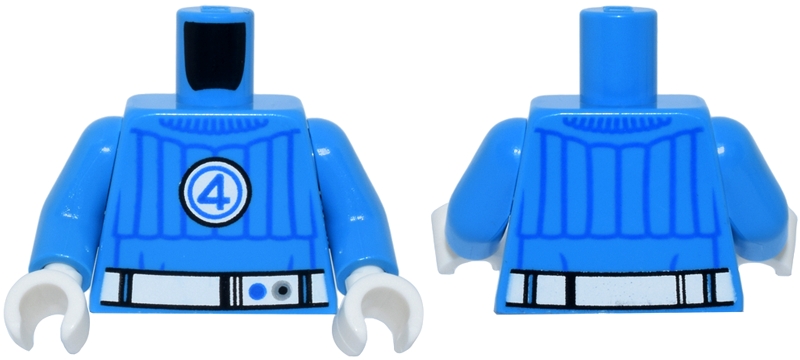 Torso Super Hero Costume with Blue Trim and Collar, White Belt and Fantastic Four Emblem with Number 4 Pattern / Dark Azure Arms / White Hands
