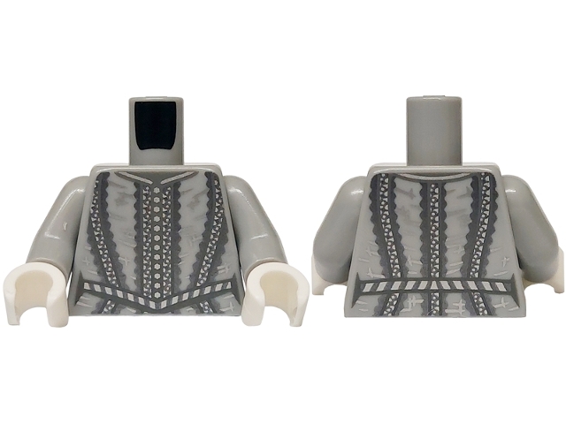 Torso Doublet Silver and Dark Bluish Gray Buttons and Detailed Trim Lines Pattern / Light Bluish Gray Arms / White Hands