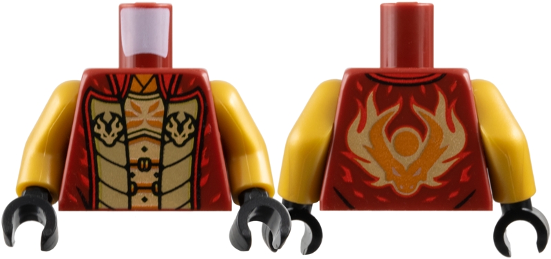 Torso Vest with Dark Tan Lapels over Gold Breastplate, Dragon Logos Pattern / Pearl Gold Arms / Black Hands