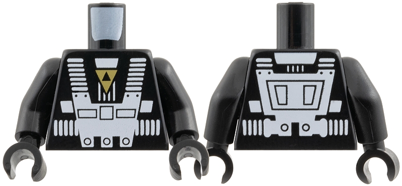 Torso Space White Harness and Chest Panel with Rivets, Gold Blacktron I Logo Pattern / Black Arms / Black Hands