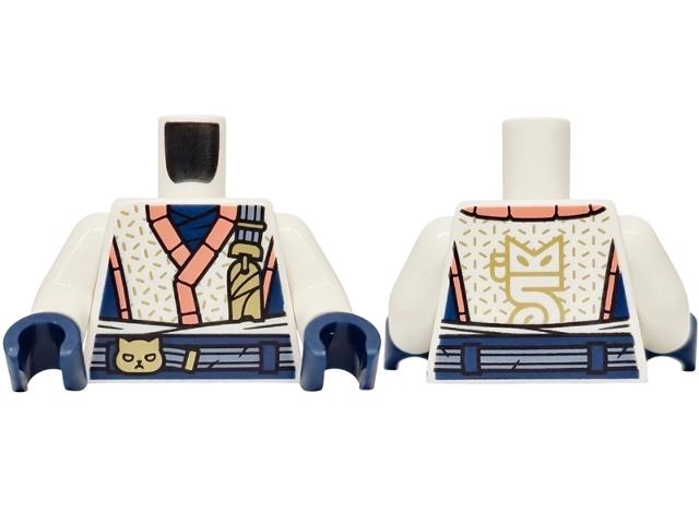 Torso Robe with Coral Hems, Dark Blue Panels, Gold Cat Head on Sand Blue Belt Pattern / White Arms / Dark Blue Hands