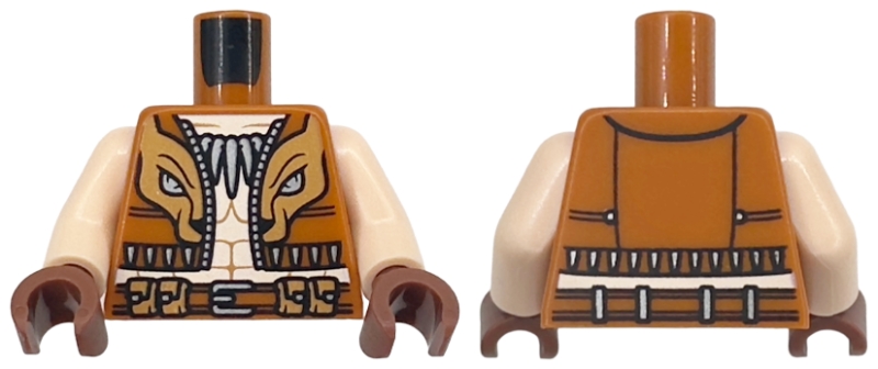 Torso Spider-Man Bare Chest with Fang Necklace, Lion Head Vest and Belt with Pouches Pattern / Light Nougat Arms / Reddish Brown Hands