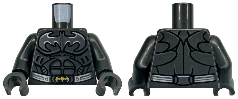 Torso Batman Logo, Black Armor Contour Lines, Silver Highlights and Utility Belt with Gold Buckle Pattern / Pearl Dark Gray Arms / Pearl Dark Gray Hands