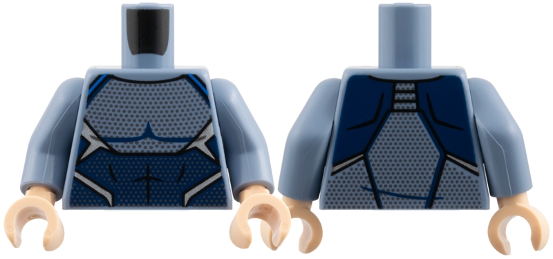 Torso Body Suit over Muscles Outline, Dark Blue Abdomen Panel, Blue Trim, Silver Mesh Dots Pattern / Sand Blue Arms / Light Nougat Hands