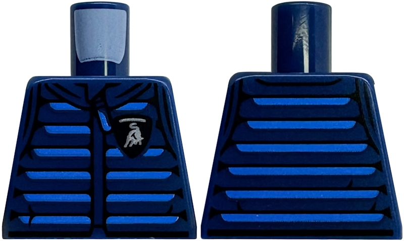 Torso Racing Jacket Silver Lamborghini Logo, Blue Zipper and Stripes, Black Trim Pattern