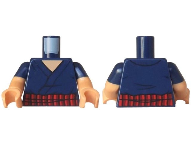 Torso Robe with Black Trim, Dark Red and Red Sash, Medium Tan Neck Pattern / Medium Tan Arms with Molded Dark Blue Short Sleeves / Medium Tan Hands
