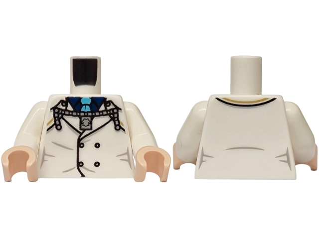Torso Jacket with Buttons, Silver Chain, Light Bluish Gray Creases, Dark Blue Shirt and Medium Azure Tie Pattern / White Arms / Light Nougat Hands