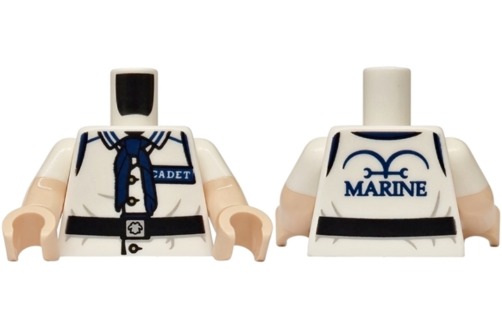 Torso Sailor Vest with Buttons and 'CADET', Black Belt with Silver Buckle, Dark Blue Neckerchief, 'MARINE' on Back Pattern / Light Nougat Arms with Molded White Short Sleeves Pattern / Light Nougat Hands