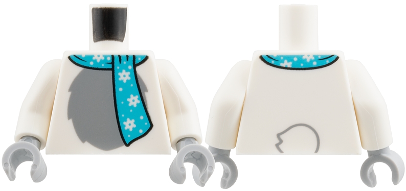 Torso with Light Bluish Gray Fur and Medium Azure Scarf with Snowflakes, Tail on Back Pattern / White Arms / Light Bluish Gray Hands