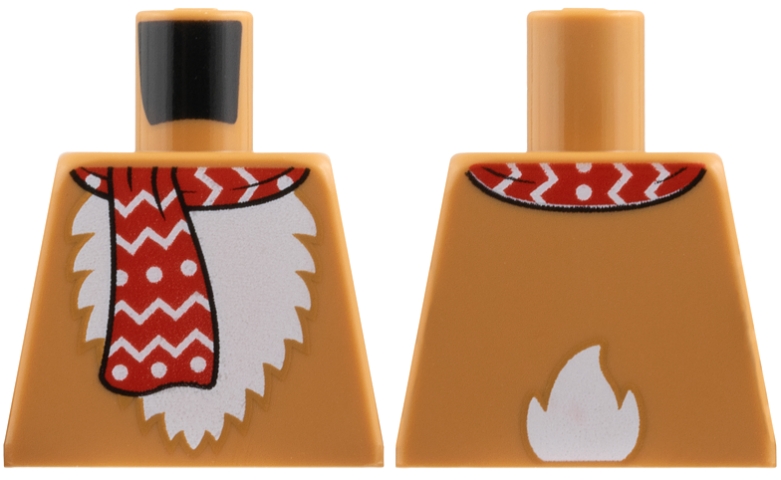 Torso with White Fur and Red Scarf with Dots and Zigzag Lines, Tail on Back Pattern