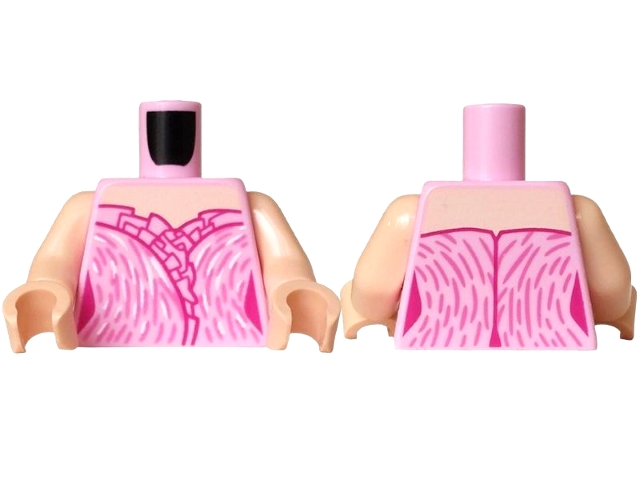 Torso Female Sleeveless Dress Top with Magenta Ruffles, Dark Pink and White Curved Lines Pattern / Light Nougat Arms / Light Nougat Hands