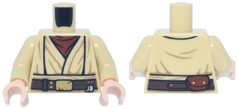 Torso SW Layered Shirt, Reddish Brown Undershirt, Dark Brown Belt with Gold Buckle and Silver Clip Pattern (SW Obi-Wan) / Tan Arms / Light Nougat Hands