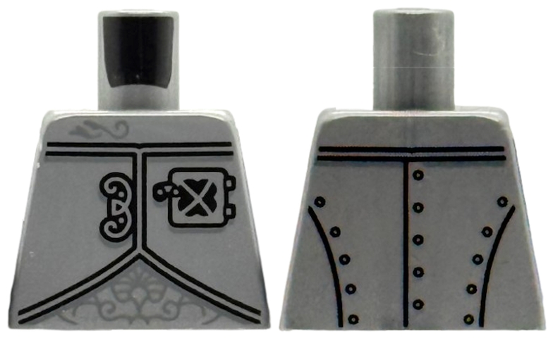 Torso Armor with Black Clasp, Hatch and Rivets, Dark Silver Ornate Symbols Pattern