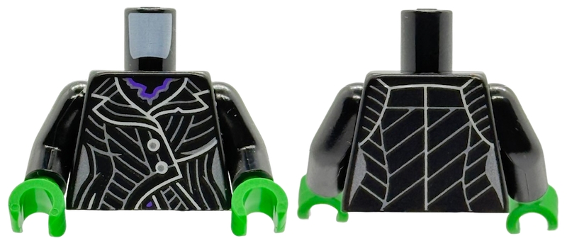 Torso Female Coat with Silver Buttons and Stripes, White Trim, Dark Purple Necklace Pattern / Black Arms / Bright Green Hands