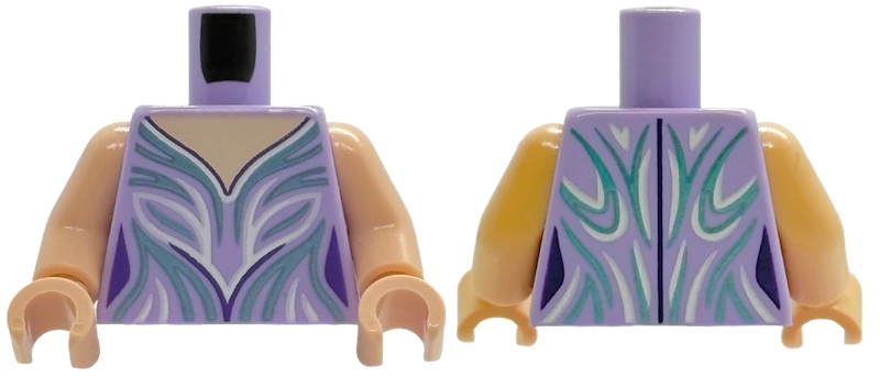 Torso Female Dress Top with Light Nougat Neck, Dark Purple, Metallic Light Blue and White Collar and Curved Lines Pattern / Light Nougat Arms / Light Nougat Hands