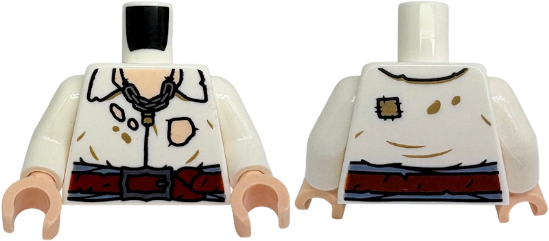 Torso Shirt Tattered with Open Collar and Holes, Light Nougat Skin, Reddish Brown Belt, Silver Buckle and Chain Necklace Pattern / White Arms / Light Nougat Hands