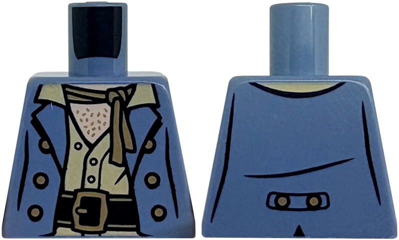 Torso Jacket with 6 Buttons over Tan Shirt with Open Collar, Black Belt, Dark Tan Buckle and Scarf, Hairy Light Nougat Chest Pattern