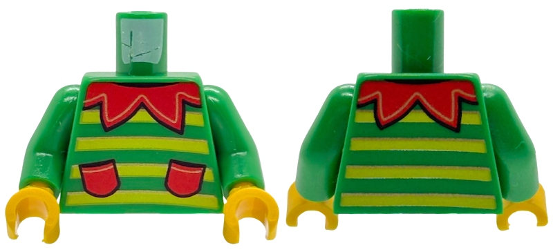 Torso Sweater with Lime Stripes, Red Scalloped Collar and Pockets Pattern (BAM) / Green Arms / Yellow Hands