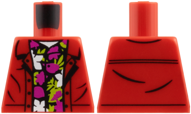 Torso Jacket Open, Black Hawaiian Shirt with Lime Leaves, White and Magenta Flowers Pattern