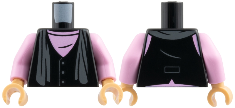 Torso Vest, Bright Pink Shirt, Dark Bluish Gray Scarf and Buttons Pattern / Bright Pink Arms / Medium Tan Hands