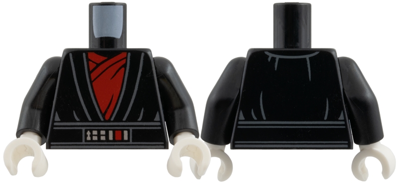 Torso Robe with Light Bluish Gray Trim, Red Tunic, Silver and Red Belt Buckle Pattern / Black Arms / White Hands