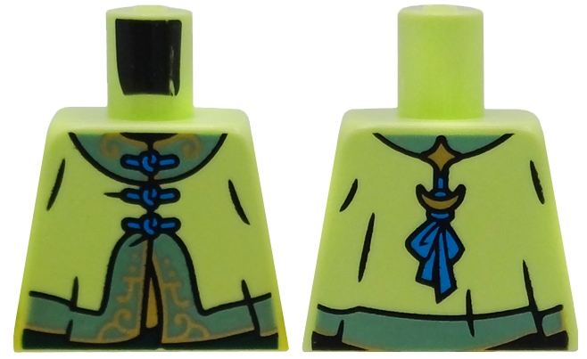 Torso Tang Jacket, Dark Azure Laces, Sand Green Collar and Hem with Gold Filigree Pattern