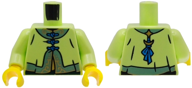 Torso Tang Jacket, Dark Azure Laces, Sand Green Collar and Hem with Gold Filigree Pattern / Yellowish Green Arms / Yellow Hands