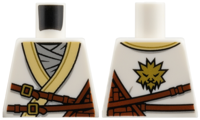 Torso Tunic with Tan Hem, Light Bluish Gray Scarf, Reddish Brown Straps, Gold Buckles and Trim Pattern