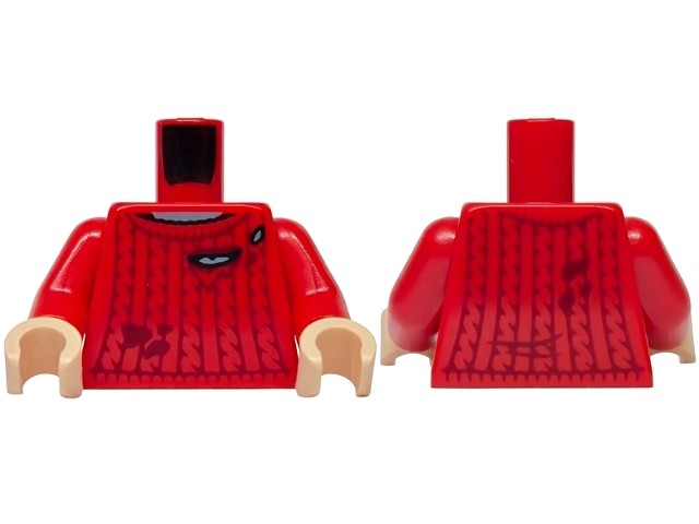 Torso Sweater with Dark Red Knit and Stains, Torn over Sand Blue Shirt Pattern / Red Arms / Light Nougat Hands