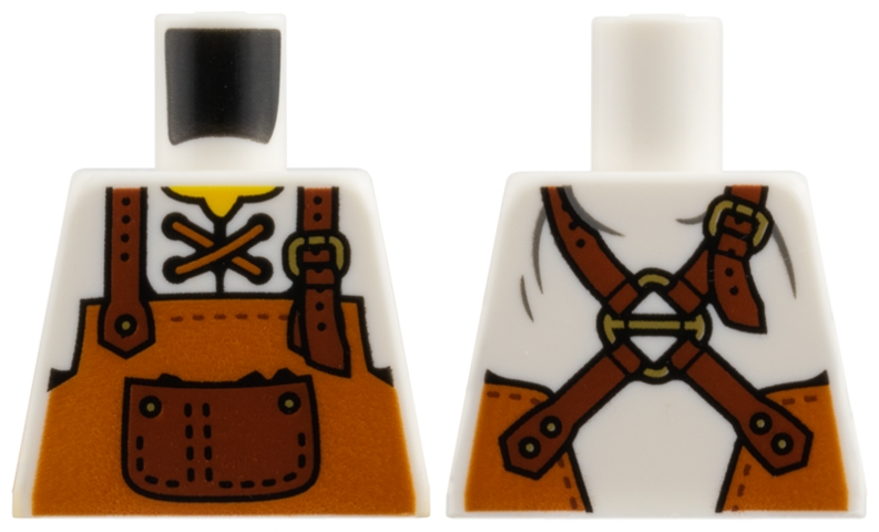 Torso Shirt, Yellow Neck, Dark Orange Apron with Reddish Brown Straps and Pocket Pattern