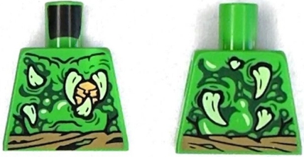 Torso Dark Tan Tattered Belt, Gold Heart, Dark Green Skin Wrinkles, Yellowish Green Barbs Pattern