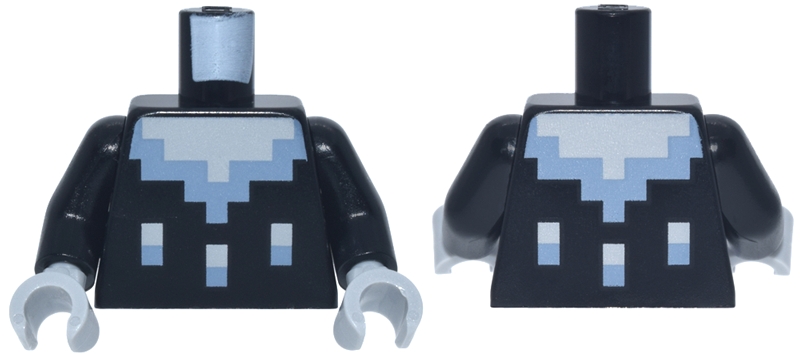 Torso Pixelated Light Bluish Gray and Sand Blue Neckline and Dots Pattern / Black Arms / Light Bluish Gray Hands